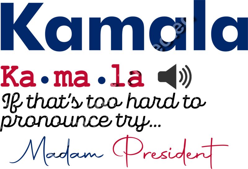 Kamala Harris 2024 campaign graphic with stylized text and audio symbol Madam President tagline