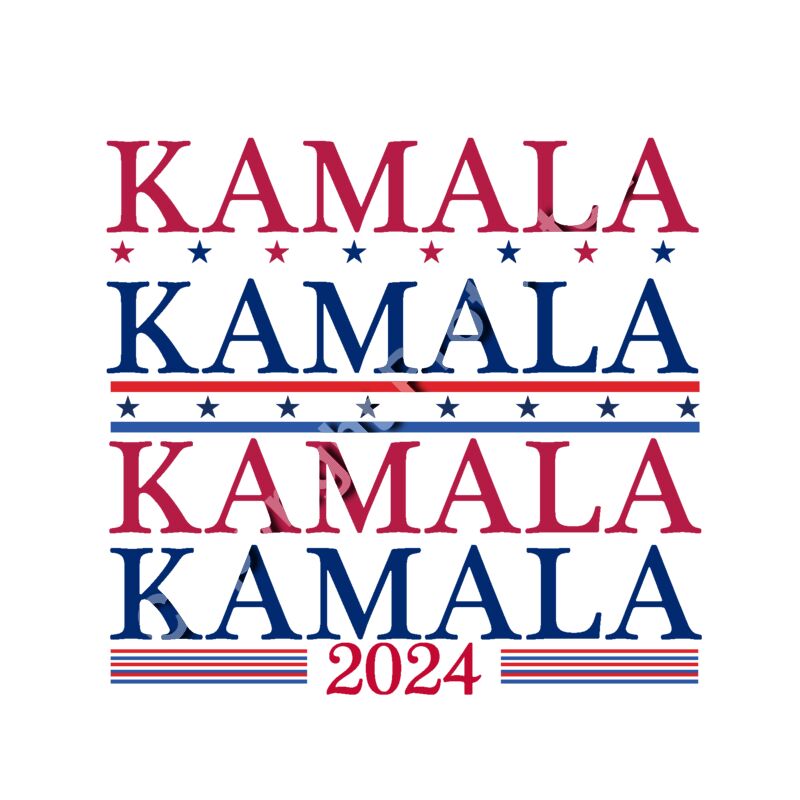 Kamala Harris 2024 campaign text design with red and blue colors and star accents
