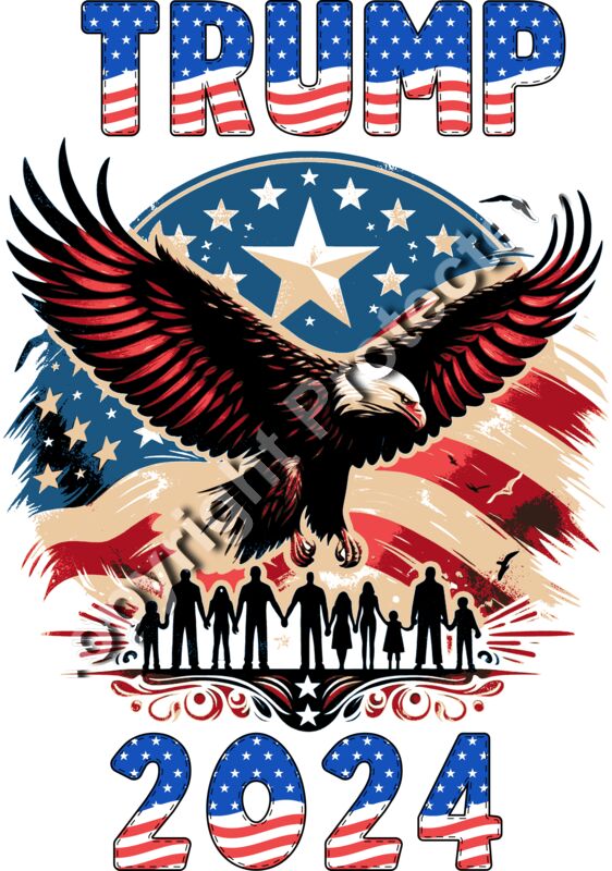 Trump 2024 patriotic eagle family silhouette American flag design