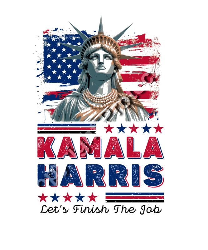 Kamala Harris 2024 campaign art featuring the Statue of Liberty and American flag colors