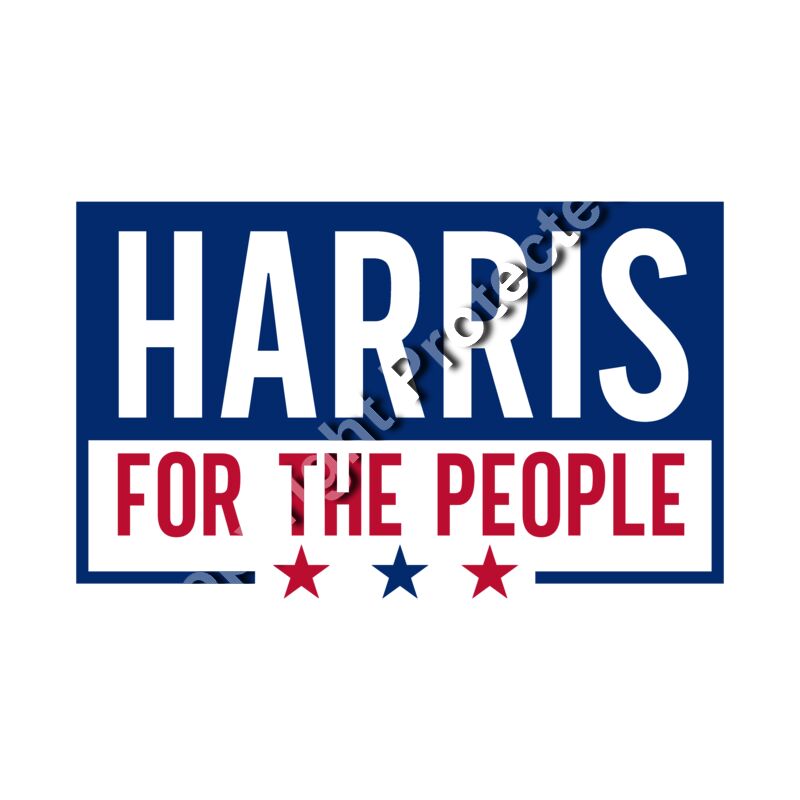 Kamala Harris 2024 campaign graphic featuring bold typography in blue and red HARRIS FOR THE PE