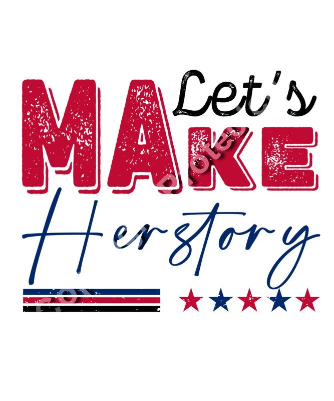 Kamala Harris 2024 campaign slogan Make Herstory with red and blue colors and stars make herst