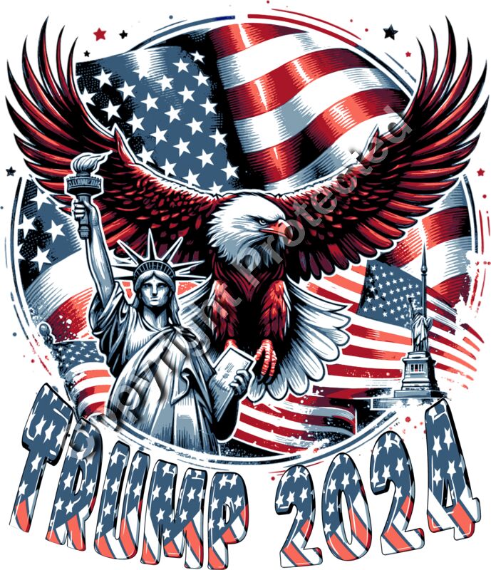 Trump 2024 eagle statue liberty American flag patriotic artwork