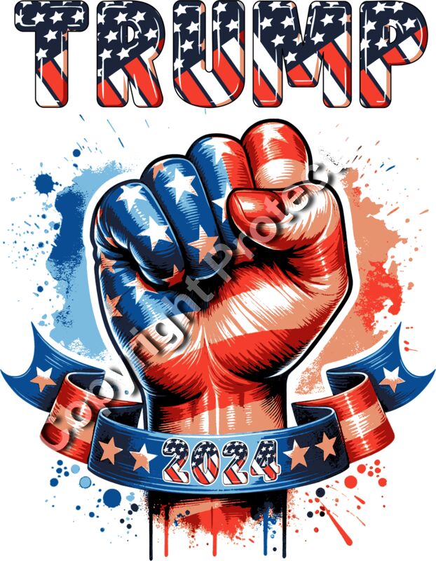 trump 2024 patriotic fist american flag red white blue design